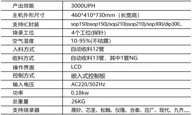 ◆一次同时烧写四个芯片,同时12管加料13管出料,自动化程度高。