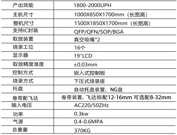 ◆一小时产能1800UPH/PCS(未计算烧录时间)